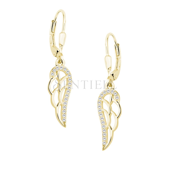 Silver (925) Earrings - wings with white zirconia, gold-plated