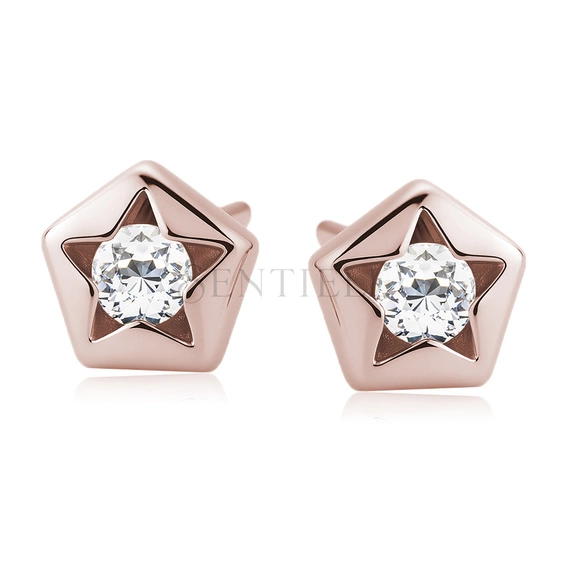 Silver (925) rose gold-plated star shape earrings with zirconia