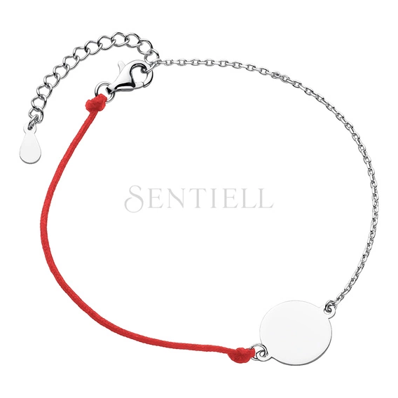 Silver (925) bracelet with red cord - circle