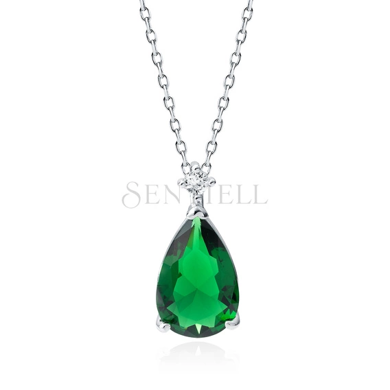 Silver (925) necklace with emerald zirconia - teardrop