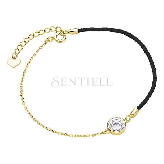 Silver (925) gold-plated bracelet with black cord - zirconia