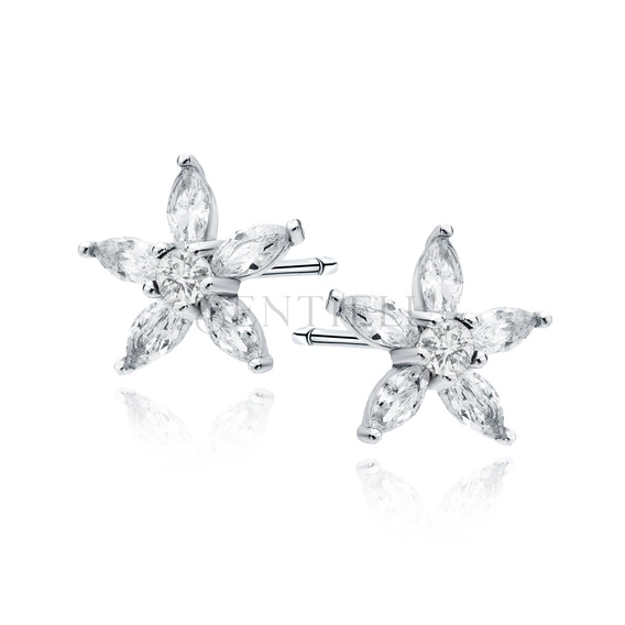 Silver (925) earings - flower with white zirconias