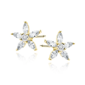 Silver (925) gold-pated earings - flower with white zirconias