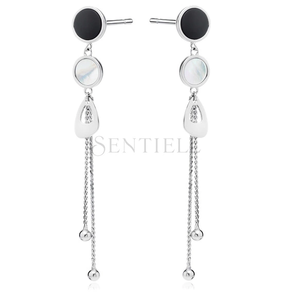 - Silver (925) earrings - chains with balls, black onyx, nacre