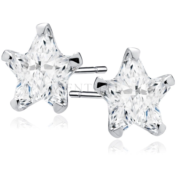 Silver (925) earrings white zirconia 8 x 8mm stars