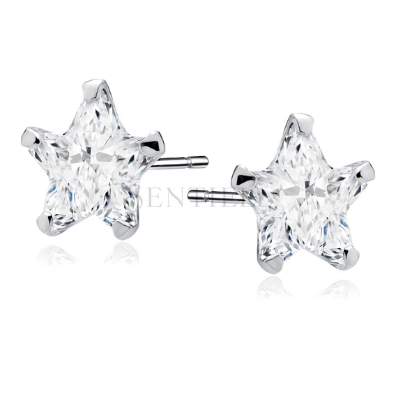 Silver (925) earrings white zirconia 6 x 6mm stars