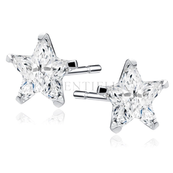 Silver (925) earrings white zirconia 5 x 5mm stars