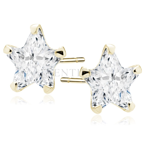 Silver (925) gold-plated earrings white zirconia 7 x 7mm stars