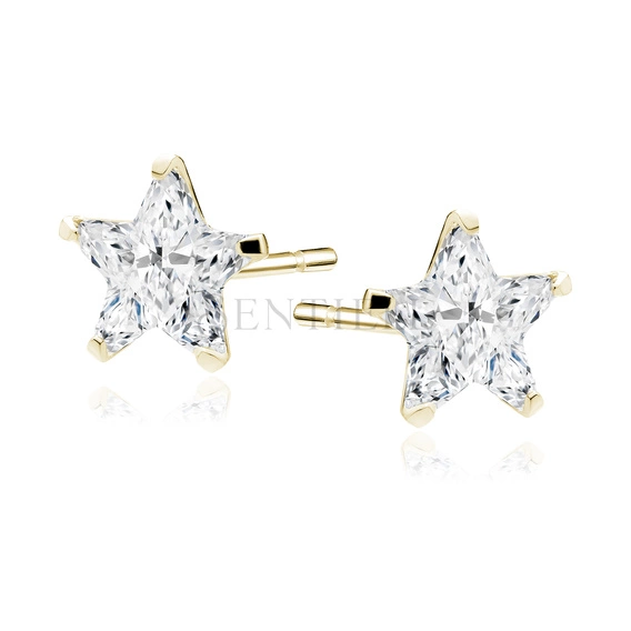 Silver (925) gold-plated earrings white zirconia 4 x 4mm stars