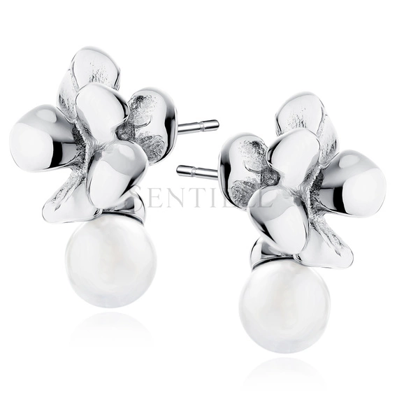 - Silver (925) earrings with flower and pearl