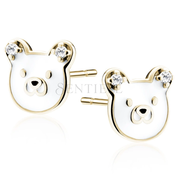 Silver (925) gold-plated enameled earrings - bears with white zirconias