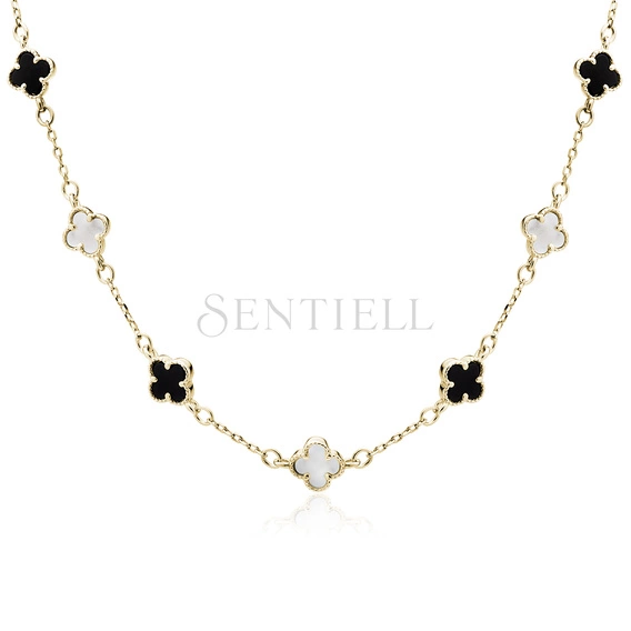 Silver (925) gold-plated necklace with black onyx and mother of pearl - quatrefoil