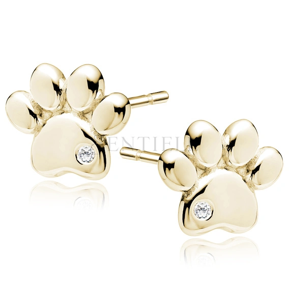 Silver (925) gold-plated earrings - dog / cat paw with white zirconia